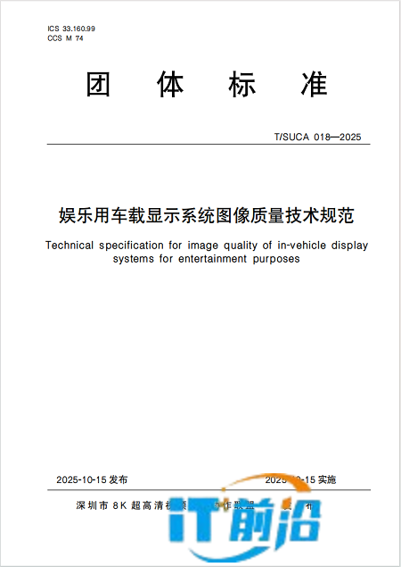 2025年10月23日,在全国音频、视频及多媒体系统与设备标准化技术委员会(SAC/TC 242)商用显示标准研究组第六次全会暨标准研讨会上,由视源股份牵头发起并主导制定的《娱乐用车载显示系统图像质量技术规范》团体标准首次面向行业正式展示。该标准由深圳市8K超高清视频产业协作联盟(SUCA)归口,并于2025年10月15日正式发布。作为行业重要技术规范,其发布填补了车载娱乐显示系统图像质量标准化领域的空白,有助于企业优化产品性能,提升产品竞争力,推动车载显示行业的健康、有序发展,助力我国智能汽车产业迈向高质量发展阶段。