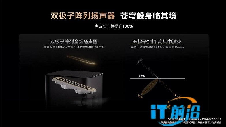 7.1.4星穹声场通过7个主音频声道、1个重低音声道和4个天空音声道,以及多项华为专利音频技术的加持,为用户呈现出细腻真实的三维空间的声音效果。