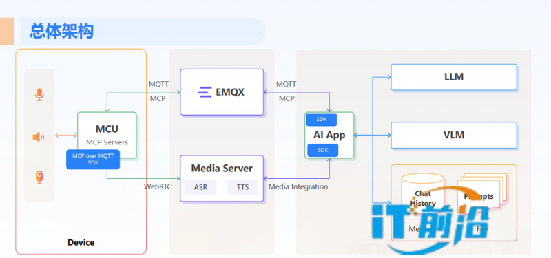 EMQ的协议融合实践,则为硬件智能体交互提供了新思路。“传统MCP协议面向IT场景,无法适应物联网的低功耗、大规模需求。”EMQ商业化技术副总裁王凡介绍,他们将MQTT与MCP协议集成,形成“MCP over MQTT”方案,既保留MQTT的低时延、高可靠优势,又解决了智能体交互的复杂度问题。目前该方案已在ESP32、BK等硬件上实现开源,为多智能体协同提供了技术支撑。