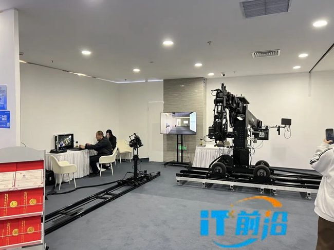 随着拍摄设备的移动,画面中的自己越来越远;或是在摄像机的拍摄下,周围的场景变幻莫测……这里,便是“视听+拍摄/AI交互”板块。该板块围绕“数智共生——以互动体验感受AI视听的科技张力”主题,汇聚多种沉浸式视听设备,观众借助先进的拍摄设备与AI技术深度交互,不断探索着视听与拍摄、AI交互的无限可能。这些创新设备拍摄出的画面是充满创意与惊喜的作品,不仅提升了拍摄的趣味性和互动性,更让观众深刻感受到了科技与艺术创作融合带来的震撼体验。