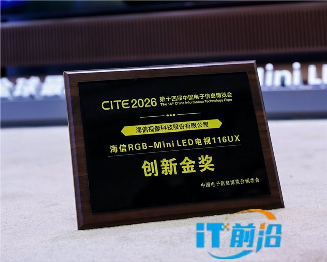 4月9日,第十四届中国电子信息博览会(CITE2026)在深圳开幕,海信携全场景智慧显示旗舰阵容重磅亮相,集中展示行业顶尖显示成果。全球首款玲珑4芯真彩背光RGB-Mini LED电视海信UX2026款、全球最大尺寸150吋海信激光电视探索X1 Ultra、全球首款5K 0OD Mini LED显示器GX Ultra等标杆级产品,凭借领先一代的彩色光源技术与极致画质表现引爆现场,一举斩获“CITE创新金奖”“CITE创新奖”等多项荣誉。
