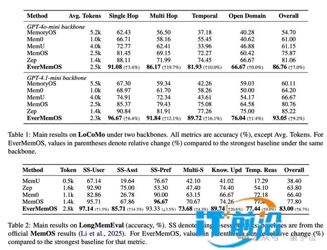 结果也很明显,EverMemOS大获全胜,全面超越现有记忆系统和全上下文模型。