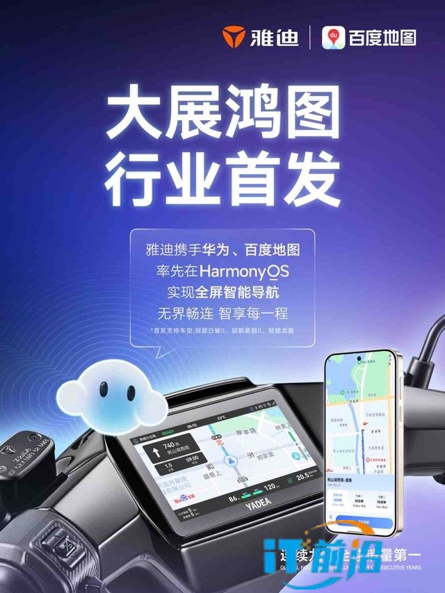 两轮车出行行业迎来里程碑式突破——百度地图与雅迪联合首发支持华为鸿蒙系统投屏导航应用。