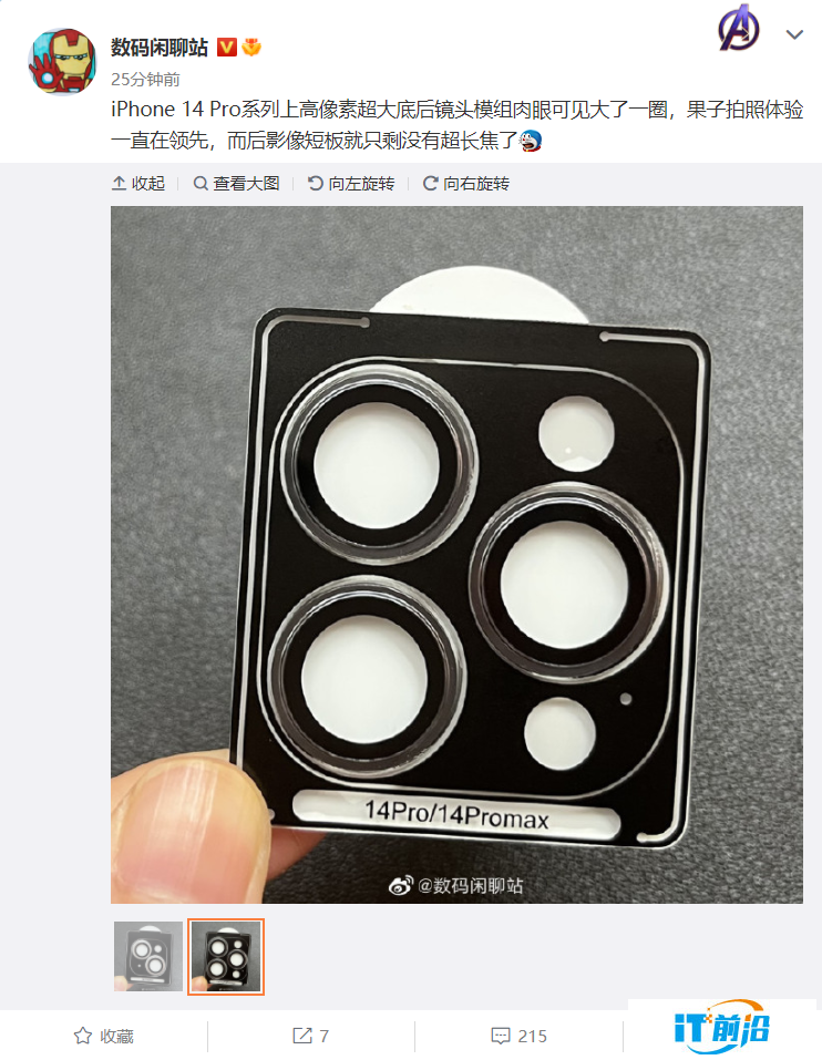 苹果 iPhone 14 Pro / Max 相机细节曝光:搭载高像素超大底后置镜头模组,肉眼可见大了一圈